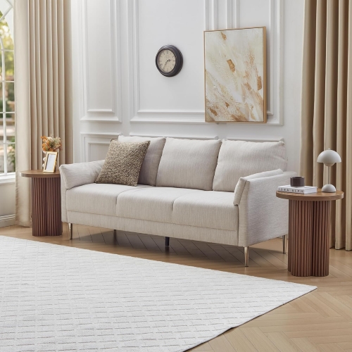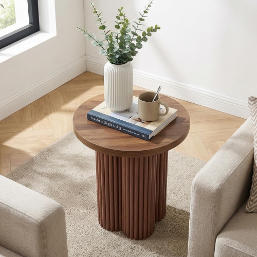 Round Fluted Side Table With Thickened Wood Top for Living Room Bedroom
